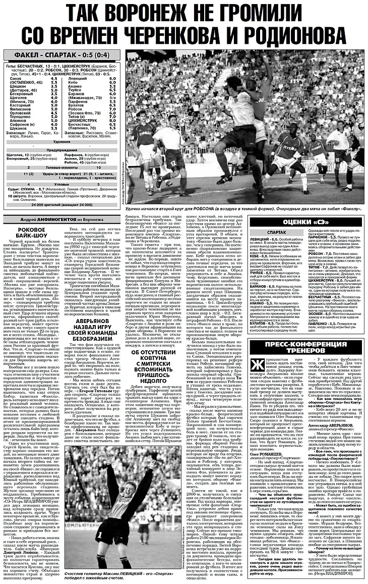 Факел (Воронеж) — Спартак (Москва) 3:0 (1:0)