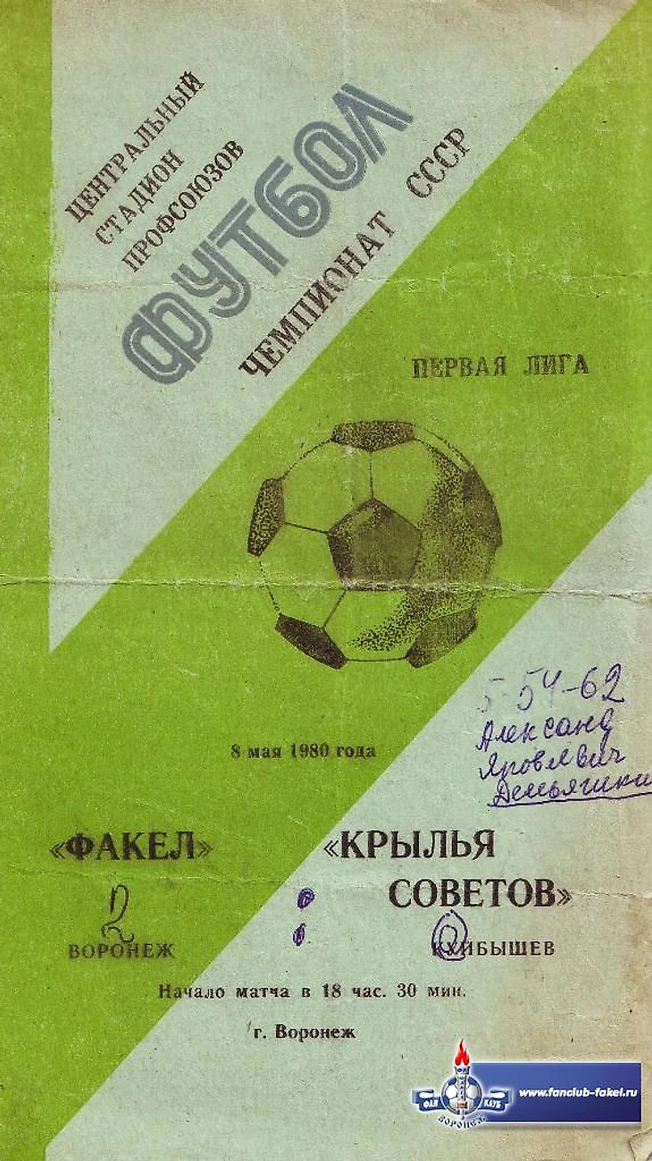 Крылья Советов – Крылья Советов – именно под такой вывеской команды впервые встретились друг с другом 67 лет назад, в мае 1956 года, во втором по рангу советском дивизионе. За воронежцами, надо сказать, авиационное название не особенно закрепилось – дебютировавший на профессиональном уровне двумя годами ранее коллектив по документам нередко продолжал именоваться просто Командой города Воронежа. А вот их куйбышевские одноклубники уже давно и достаточно уверенно выступали под крылатым именем на высшем уровне – но по итогам сезона 1955 вынуждены были опуститься в Класс Б.