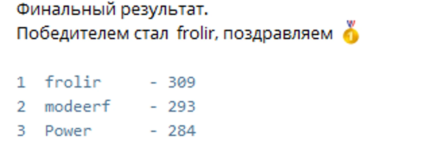 А теперь от регламента переходим к рейтингу. Начинаем!