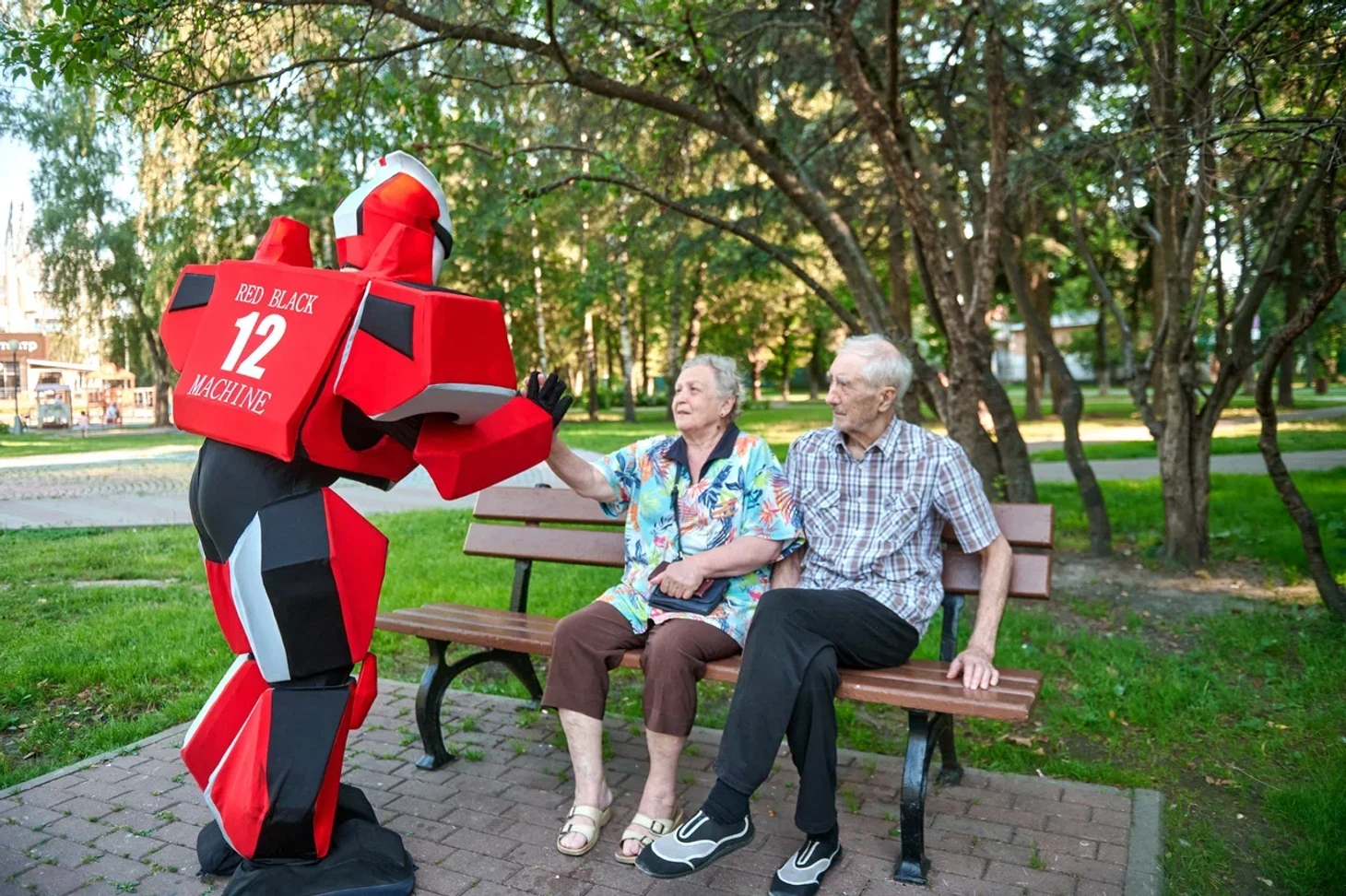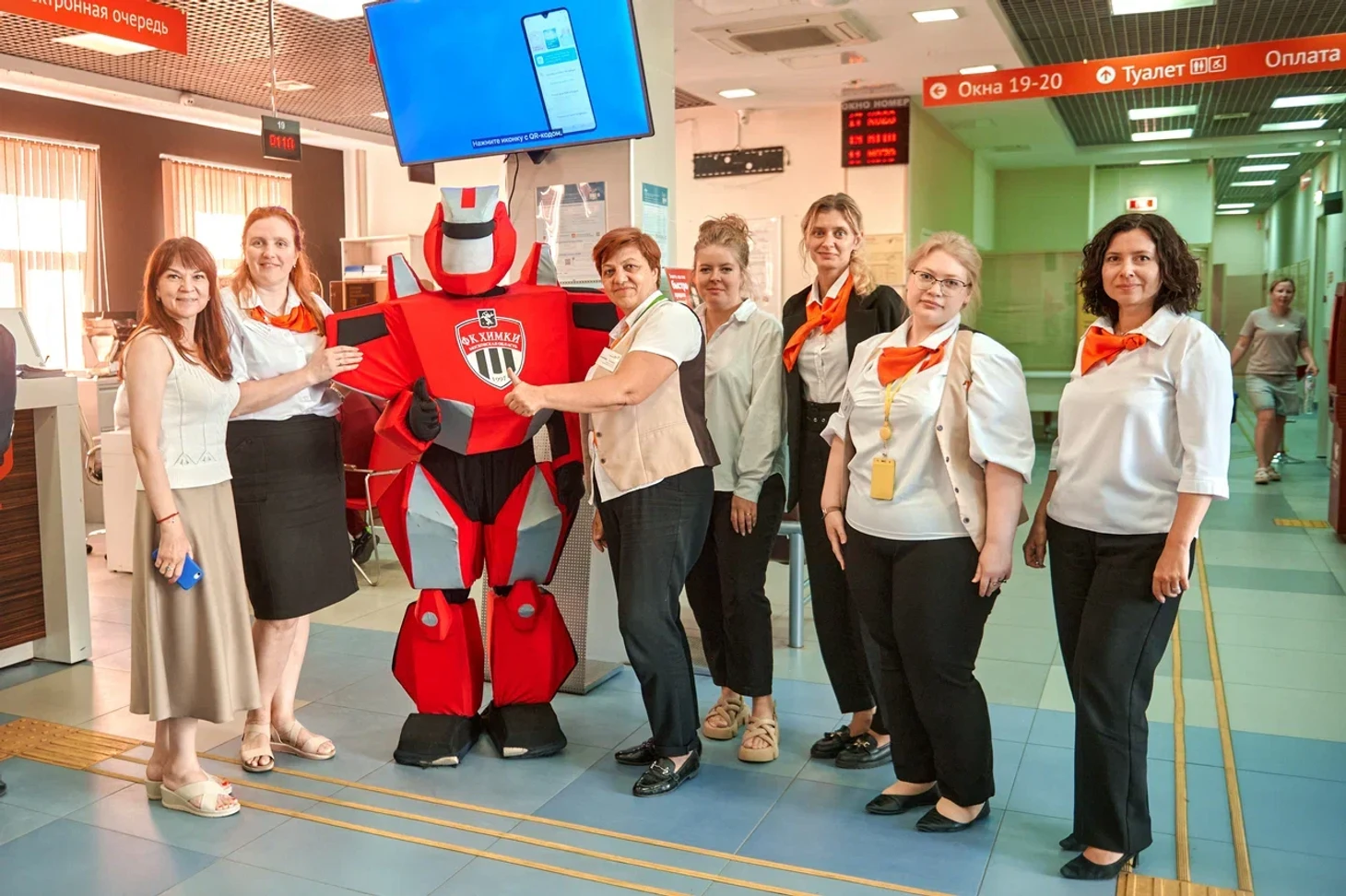 Перфоманс маскота футбольного клуба «Химки» — Робота — получился ярким. Он посетил значимые места, сделал десятки фотографий с местными жителями и даже побывал в очереди в местном МФЦ.