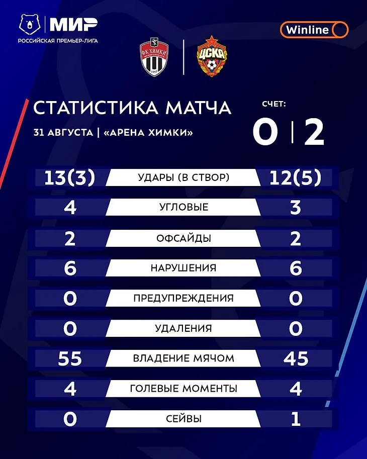 «Химки» — ЦСКА 0:2 (xG 1.56 — 1.28)