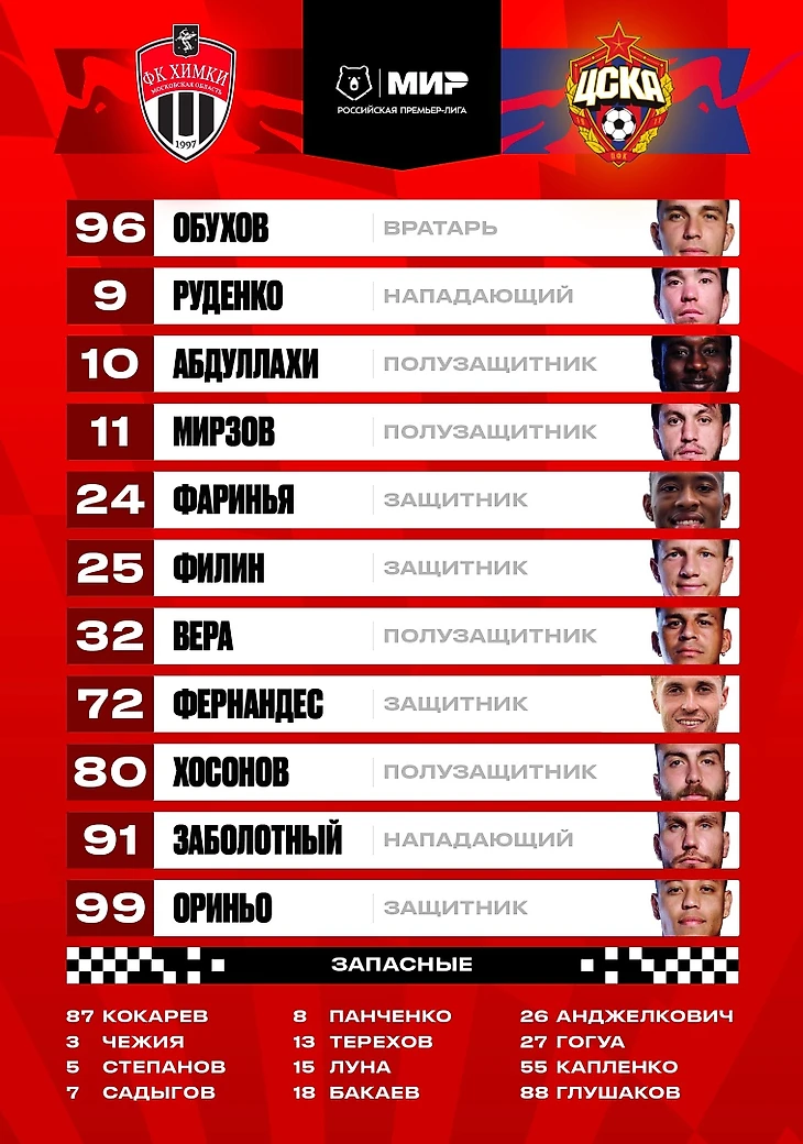 Что касается ЦСКА, то выбор стартового состава команды Марко Николича остался неизменным. В игру вступили те же футболисты, которые участвовали в прошлом туре против «Акрона».