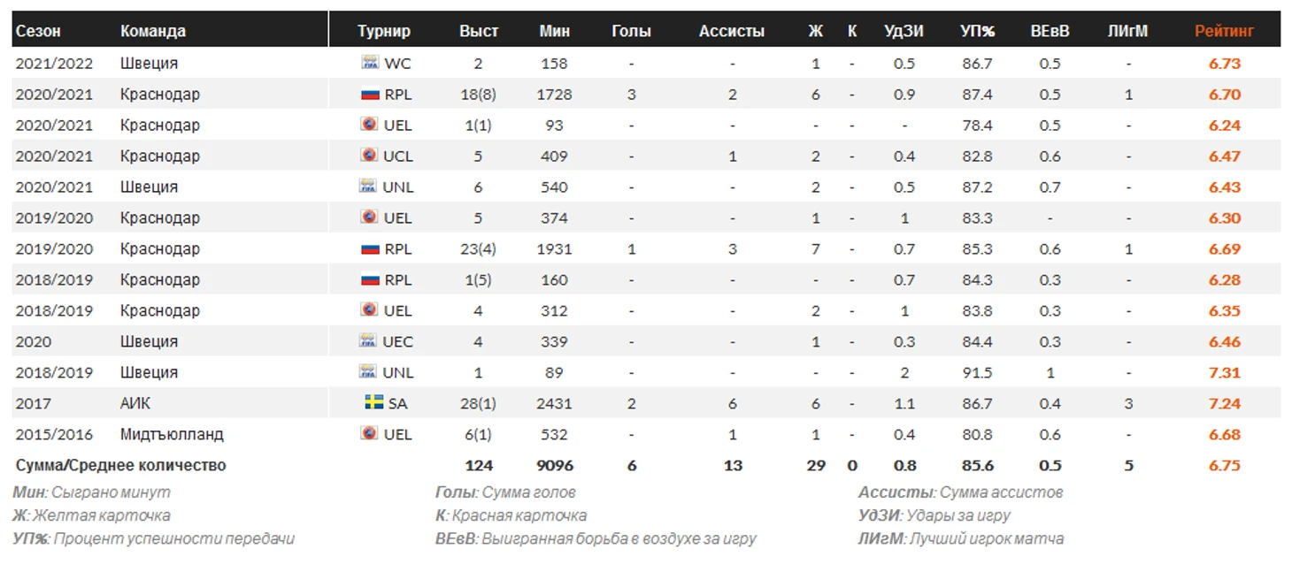 Автор-побратим Diablosax по полкам и цифрам оценил роли Кристоффера в команде и да, в когорте звезд команды, как и сборной, он не был, оценками Whoscored тоже не избалован.