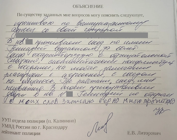 Соседи характеризуют Щербину Г.А. отрицательно: