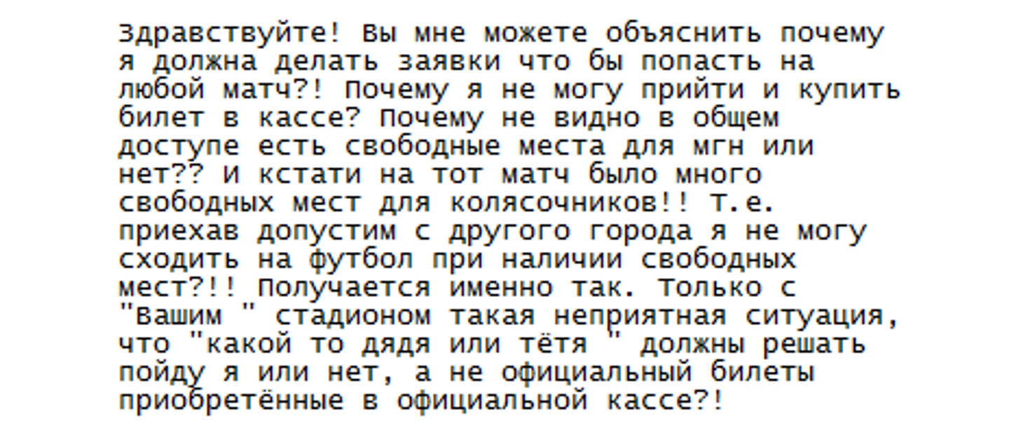 Сотрудники ФК «Краснодар» неоднократно скрывали от инвалидов необходимую им информацию об услугах предоставления права посещения матчей на стадионе ФК «Краснодар», либо предоставляли инвалидам не соответствующую действительности информацию.