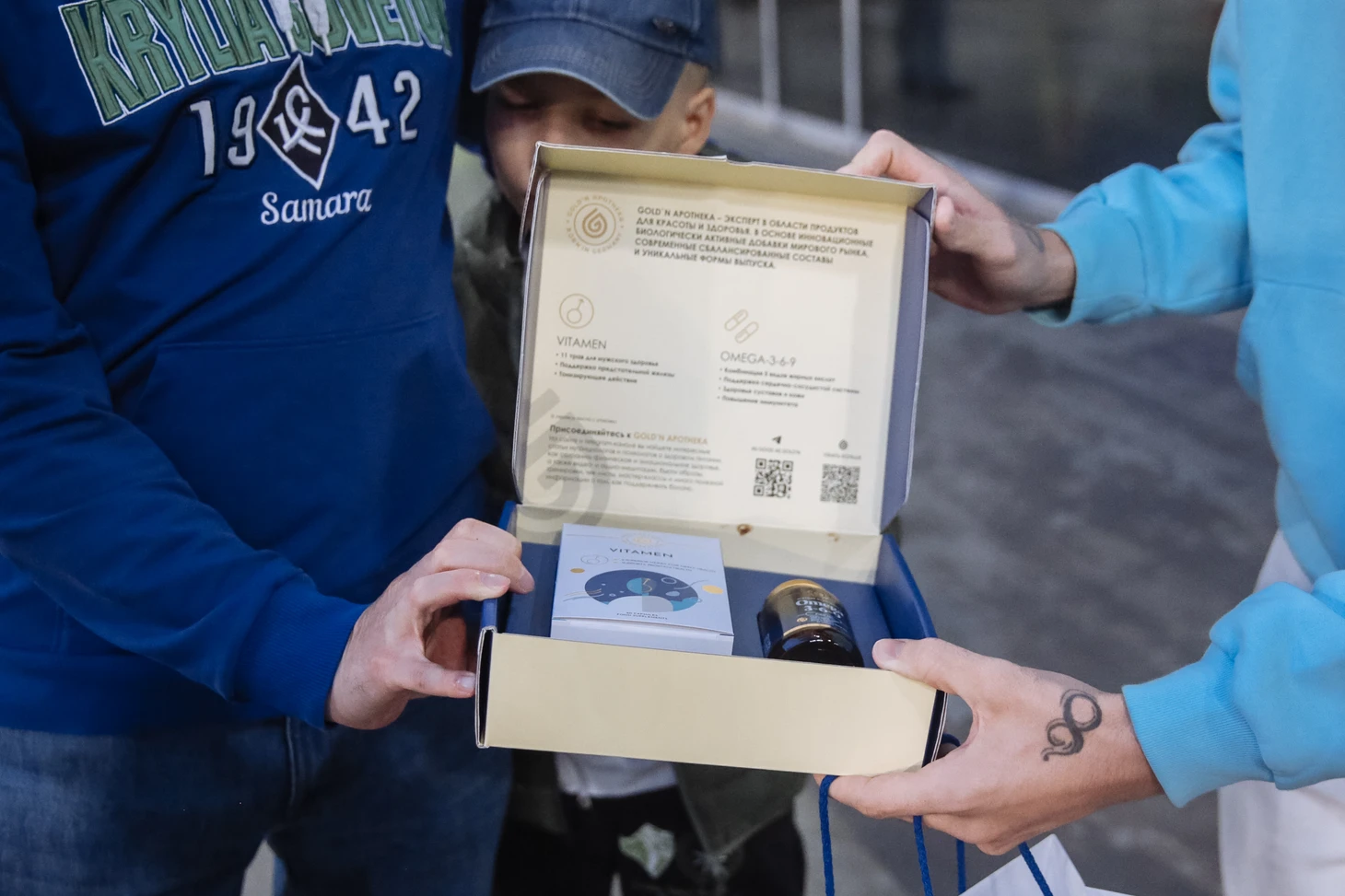 Лучшему болельщику совместно с партнером дарим набор витаминов. Происходит это в перерыве матча, на котором человек выиграл в квизе. Вручает приз игрок команды, который по какой-то причине пропускает матч. В прошлом году это были Сергей Бабкин, Макс Витюгов, Владимир Писарский, Фернандо Костанца, Денис Якуба и Гленн Бейл. Да, победитель получает не только полезные витамины, но и фото с игроком на память.