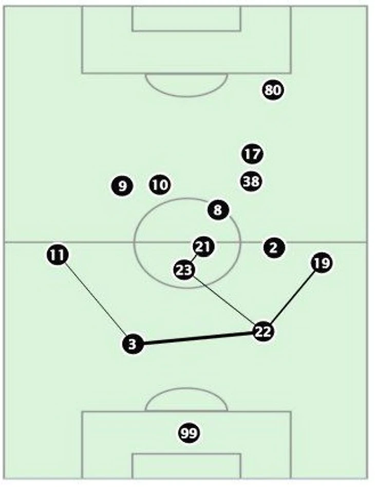 3) "Оренбург" немало владел мячом, но основные взаимодействия проходили между защитниками и опорниками.