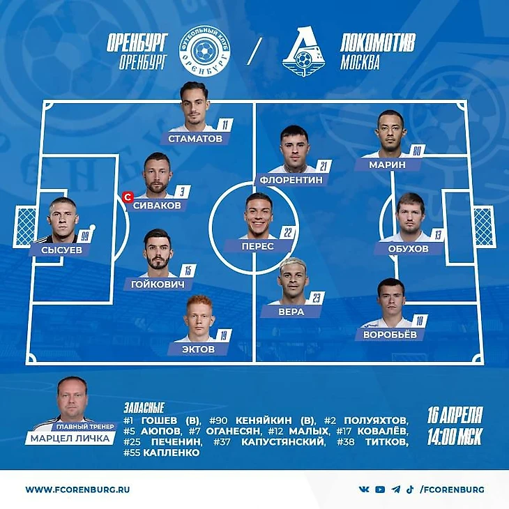 Тройку нападения "Оренбурга" мы не совсем угадали. Вместо Ковалева (56%) будет играть Обухов (28%). Зато ожидаемые Воробьев (87%) и Марин (70%) в составе. Посмотрим, как Воробьев сможет проявить себя на фланге. Все-таки это не совсем его позиция. В остальном изменений в составе "Оренбурга" нет.