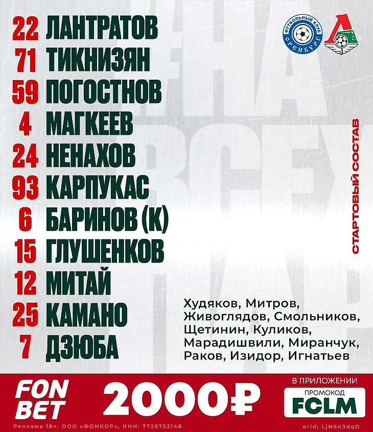 У "Локомотива" только один сюрприз - отсутствие Пиняева в заявке. Но и без него нападение выглядит внушительно. В стартовый состав не проходит Миранчук. Появляется в запасе после травмы Изидор.