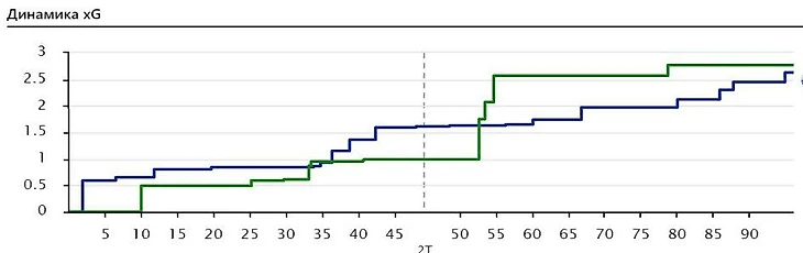 4) Распределение XG по времени показывает, что "Оренбург" должен был выигрывать первый тайм. Единственный провальный отрезок пришелся на 50-60 минуты.