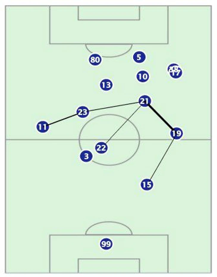 7) Игра шла в основном через Флорентина, который к тому же провел 8 удачных обводок.