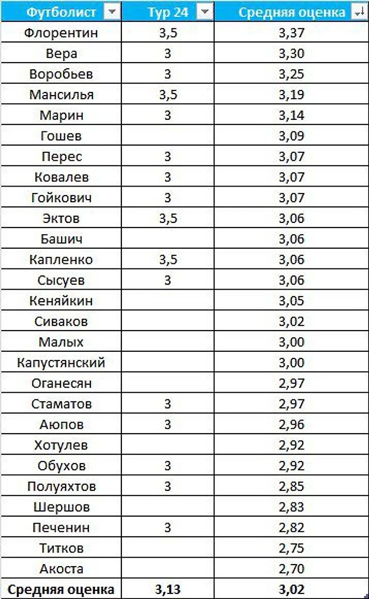 Качество футбола было посредственное, отсюда и весьма средние оценки.