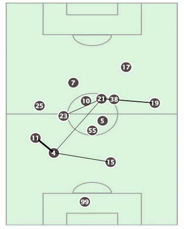1) Тепловая карта вновь показывает отсутствие адекватного рисунка игры у "Оренбурга". 5(!) игроков сбились примерно в одну точку - Капленко, Аюпов, Вера, Воробьев и Флорентин. В очередной раз непонятно, в чем была задумка Лички.