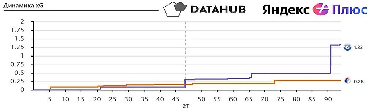 Равная игра, где до последней минуты команды имели суммарный XG сильно меньше единицы. Оба своих удара в створ "Оренбург" нанес на последней минуте.