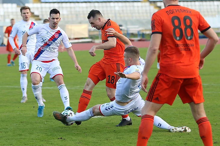 Первые замены Дмитрий Парфёнов произвел уже на 30-й минуте. Поле покинули Димитров, Егорычев, Бикфалви и Погребняк. Их сменили Бумаль, Шаболин, Панюков и Жамалетдинов. Почти сразу после выхода на замену момент был у Панюкова. Андрей ударом головой замкнул навес Кухарчика. Мяч чуть разминулся с целью. Самый опасный момент первого тайма наши соперники создали на 40-й минуте, когда ударом со штрафного отправили мяч в перекладину ворот Ярослава Годзюра.