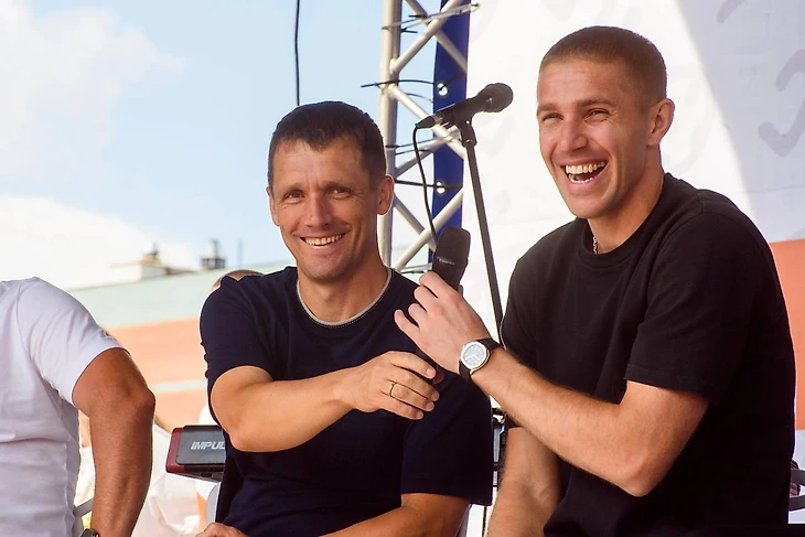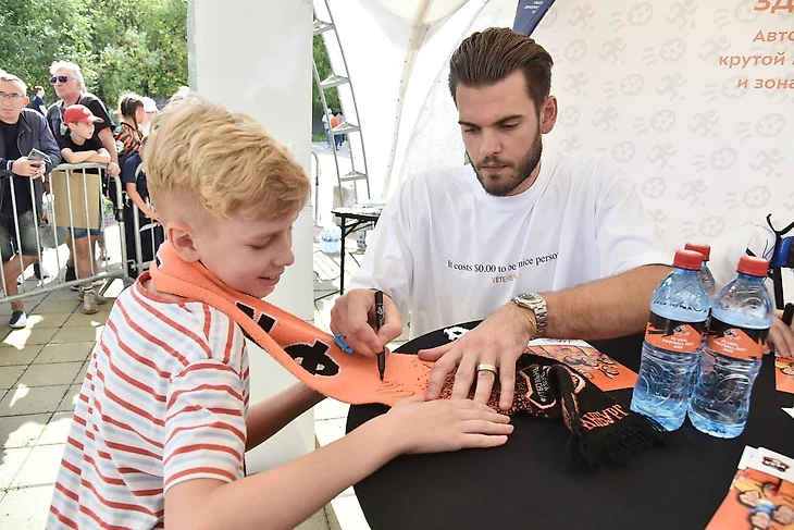 ... состоялось главное - встреча с футболистами и главным тренером. В Парк прибыли не все (вчера только обыграли Орен в гостях, надо отдохнуть парням), зато появились восстанавливающиеся от травм в Столице Урала