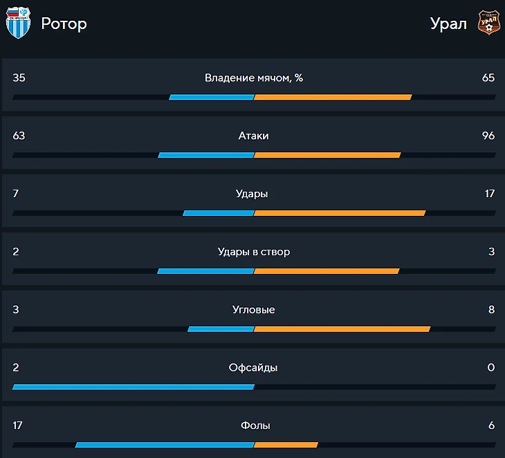 У «Ротора» всего два удара в створ, зато оба были убойные (из проблемной зоны Маргасова, конечно). Александр Селихов достоин признания как лучший игрок матча, отличный дебют! А что же «Урал»? Какие-никакие xG случились.