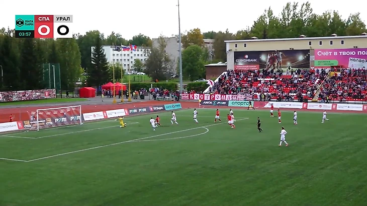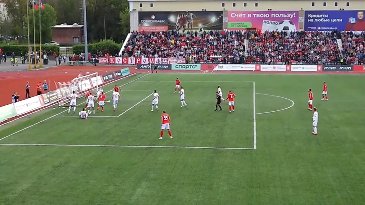 Саплинов практически с белой линии заряжает в дальнюю белую штангу! «Спартак» мог виртуально догнать «Факел» по очкам и выходить на второе место (в личках хуже с воронежцами).