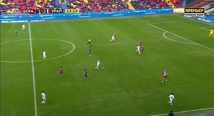 Армейцы рассчитывали на доставку мяча через фланги, в центральной оси оказались всего два игрока – Гбамен и Медина. Новички отвратительно оборонялись в первом тайме – «Урал» раз за разом пользовался пространством между линиями.