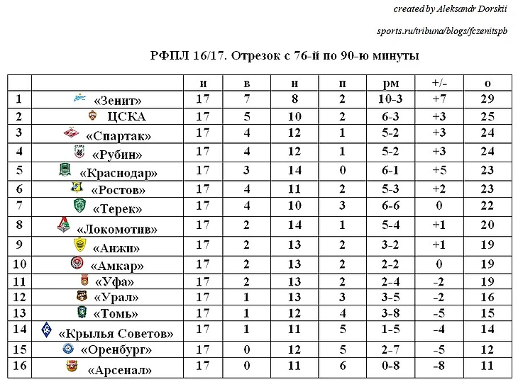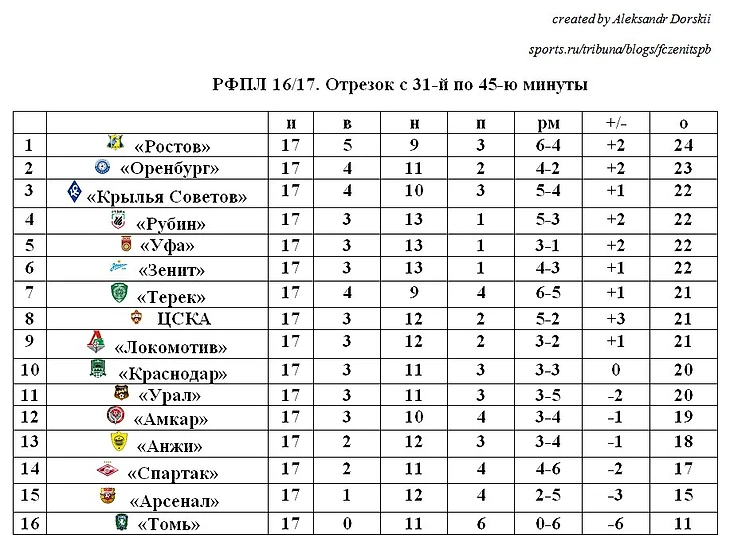 «Зенит» в целом по цифрам выглядит стабильнее, но эта стабильность обманчива. Питерцы имеют большой перевес над всеми конкурентами, когда лидеры команды Луческу (в первую очередь Витцель, Жулиано и Дзюба) находятся в хорошей форме, но уже в ноябре показатели петербуржцев опустились на уровень середняков. Кроме того, на сборах румынскому специалисту нужно уделить особое внимание стандартам у обоих ворот.