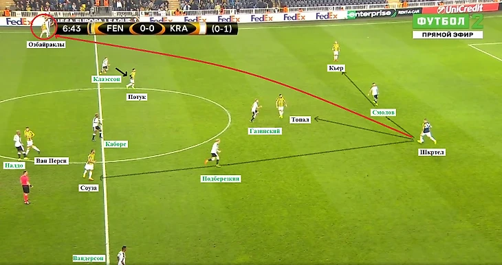 Во втором тайме гостям удалось совсем отодвинуть игру от своих ворот – «Фенербахче» не сподобился на навал даже в последние 20 минут встречи. Из 6 точных передач, сделанных игроками хозяев в радиусе 15 метров от ворот Крицюка, 5 оказались кроссами – серьезный показатель ограниченности атаки.