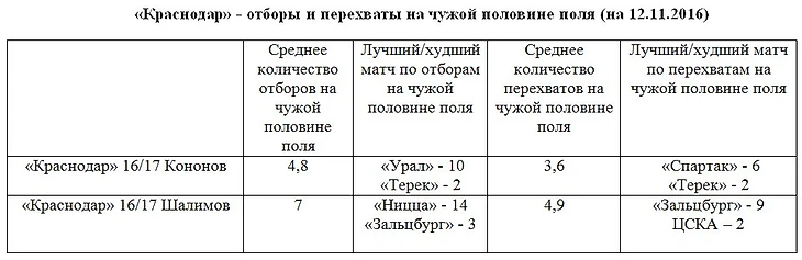 О переменах в оборонительной игре «Краснодара» на чужой половине поля мы говорили еще осенью. На середину ноября разница между действиями краснодарцев при Кононове и Шалимове выглядяла так: