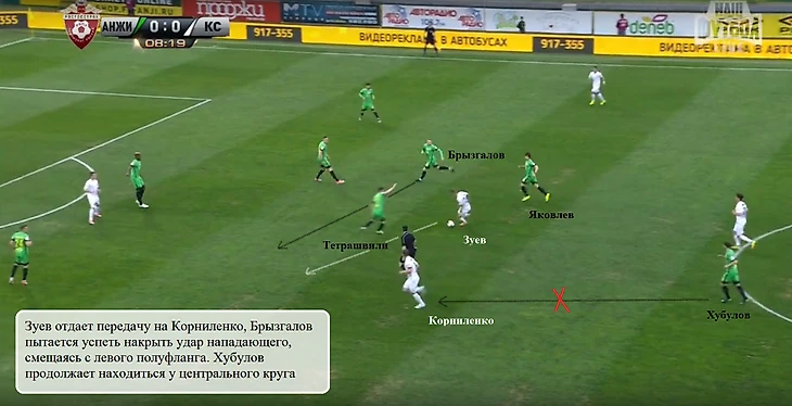В мяче Зотова также вряд ли стоит винить Брызгалова – хавбек «Анжи» вовремя выдвигался навстречу Зотову, перекрывая его дальнейшее продвижение в центр. Яковлев был обязан раньше встречать защитника «Крыльев» и не давать тому бить по воротам Юрченко.
