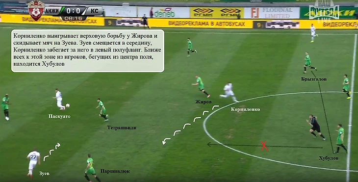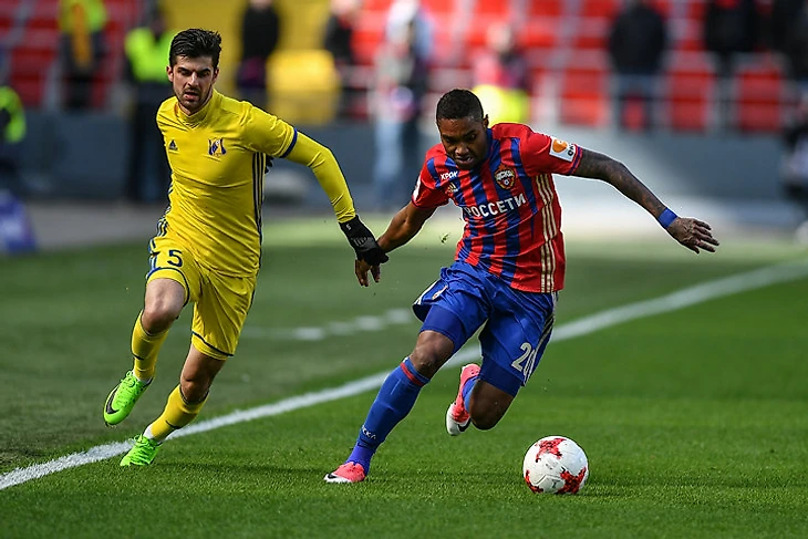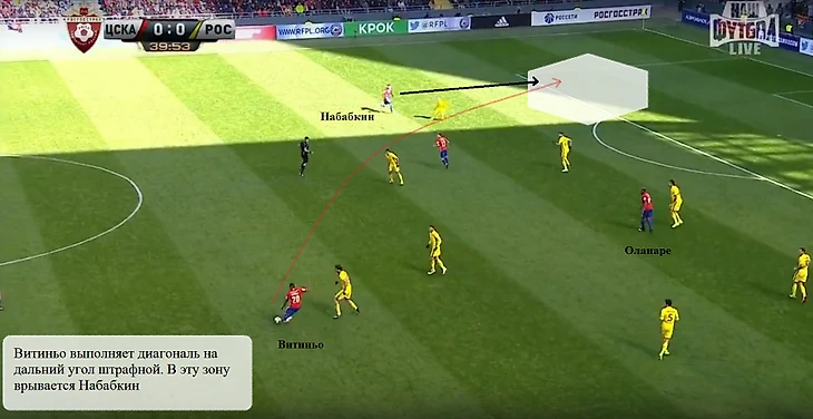 Зоран Тошич, занимавший эту позицию в трех весенних матчах, при атаках армейцев с правого фланга практически не забегал в штрафную. Это делалось осознанно – серб караулил подбор у левого угла штрафной. Это заметно отличалось от того, что на противоположном фланге делал Фернандес – русский бразилец постоянно оказывался едва ли не во вратарской соперника при подачах с левого фланга, пытаясь выиграть борьбу на втором этаже.