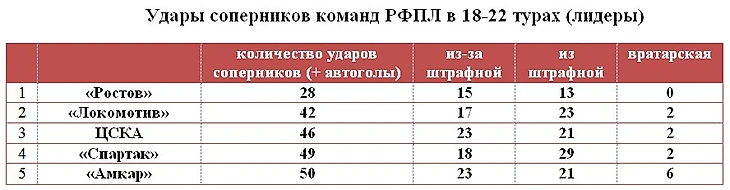 Количество ударов по воротам «Ростова»