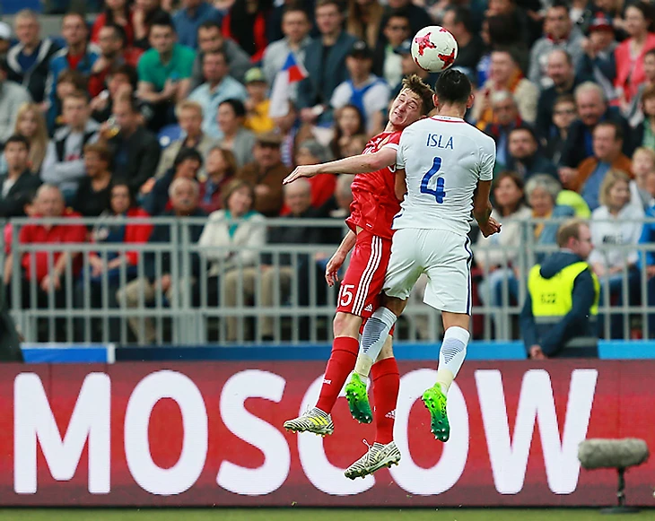 Абсолютно новое построение для сборной Черчесова не могло не привести к проблемам по ходу пятничной игры – они касались действий на флангах. Самедов и Смольников не могли разобраться с тем, кто из них отвечает за опеку Босежура (из-за чего левый латераль чилийцев выполнил семь кроссов за первый тайм), а на противоположном фланге Миранчук постоянно опаздывал за подключениями Ислы.
