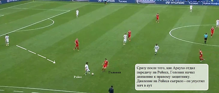 В первом тайме наша сборная пыталась применять слаженный прессинг, и одним из главных его участников был именно Головин.