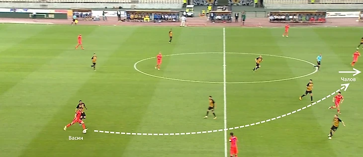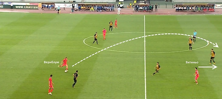 Во втором тайме москвичи вновь несколько раз проваливались в середине поля – чаще всего это случалось после потери мяча на стыке средней и финальной третей поля. Дзагоев в такой ситуации располагался слишком высоко (в таком стиле в «Спартаке» действует Глушаков), а Головин не страховал своего партнера. В результате Вернблум оказывался в одиночестве против двух (а иногда и трех) оппонентов.