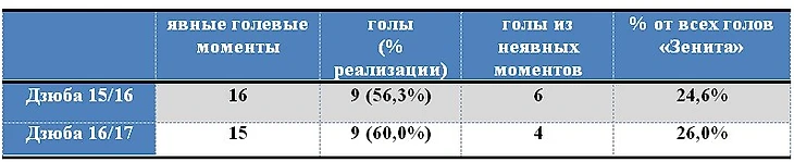 Важно, что количество реальных шансов забить у Дзюбы не снизилось резко после ухода из «Зенита» Халка. Даже по ходу провального для питерцев весеннего отрезка сезона у Артема возникали явные голевые моменты (гостевая игра с «Крыльями Советов», домашний матч с «Краснодаром»).