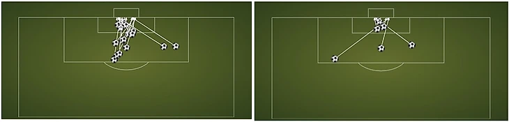 Очевидно, что в нынешнем сезоне «Зенит» реже будет навешивать в штрафную соперника (пока соотношение кроссов 16.8 в сезоне-17/18 против 20,3 при Луческу), поэтому возможностей для ударов у Дзюбы в принципе будет меньше. В таком случае для питерской команды больше пригодится умение Артема вести единоборства и скидывать мяч на партнеров, находясь спиной к воротам соперника.