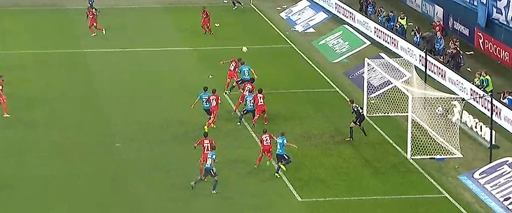 Глушаков, видимо, рассчитывал на перехват передачи из аута головой, но это казалось странным. В теории Комбаров двигался правильно, уходя в середину, однако хаотичное расположение других игроков привело к тому, что «Зенит» за две передачи вывел Кузяева на ударную позицию.
