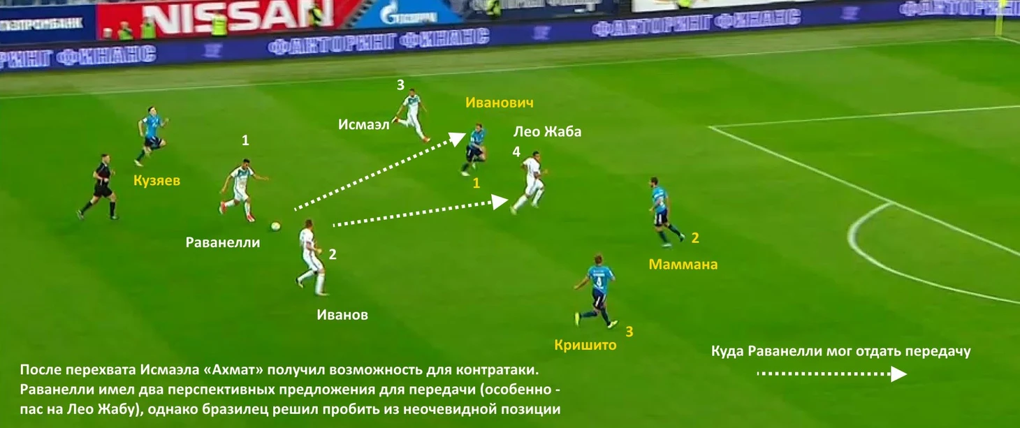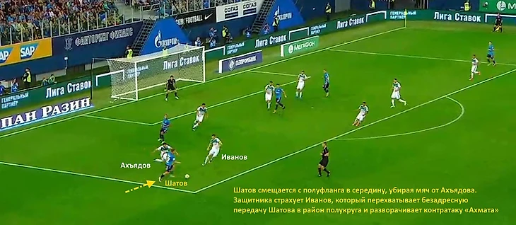 Нападающие «Зенита» либо заставляли грозненцев находить неоптимальные варианты для продолжения атаки в центре поля...