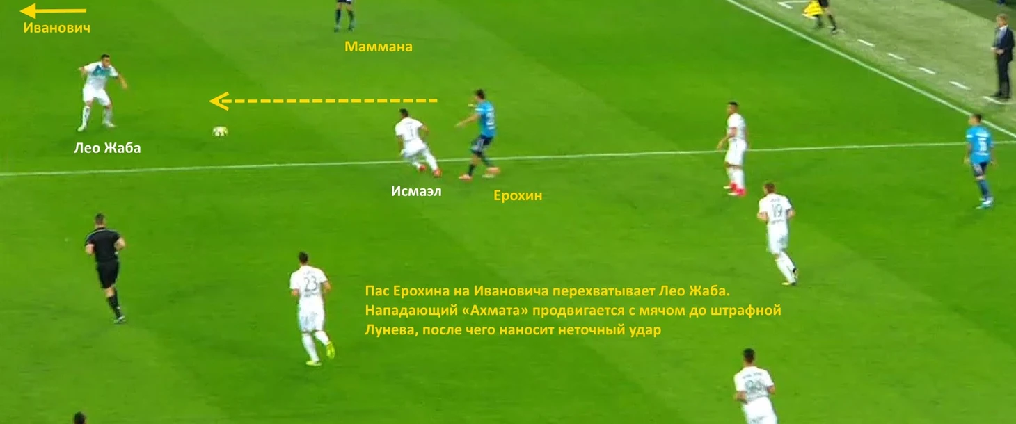 На старте сезона «Зенит» по-разному проводит начало встреч – например, в матче со «Спартаком» в первые полчаса команда Манчини почти ничем не отметилась, а в первой половине игры с «Уралом» замучила екатеринбуржцев высоким прессингом. Против «Ахмата» питерцы вновь начали вяло, не только не создавая давления у штрафной Гудиева, но и обрезаясь в районе центрального круга.