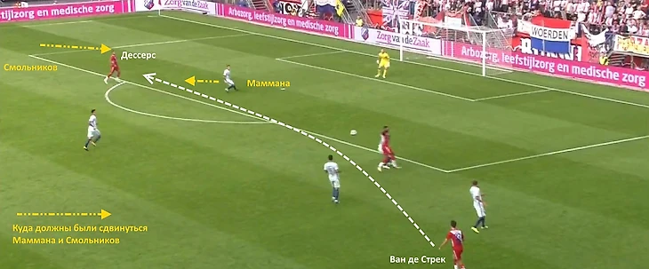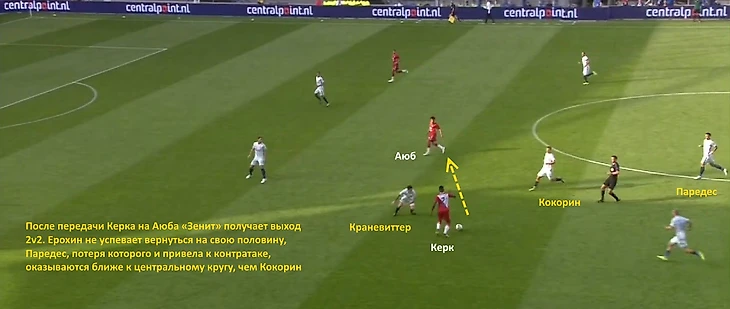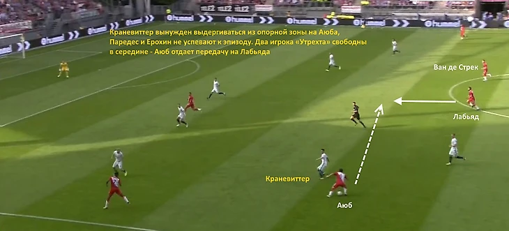 Паредес и Ерохин не успевали закрывать свободные зоны и при позиционных атаках голландцев, но при контратаках «Утрехта» ситуация становилась критической.