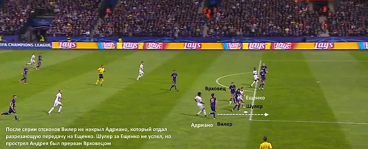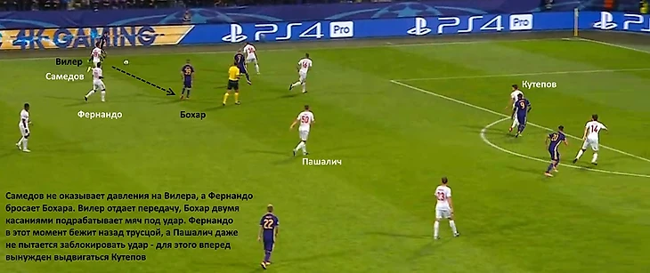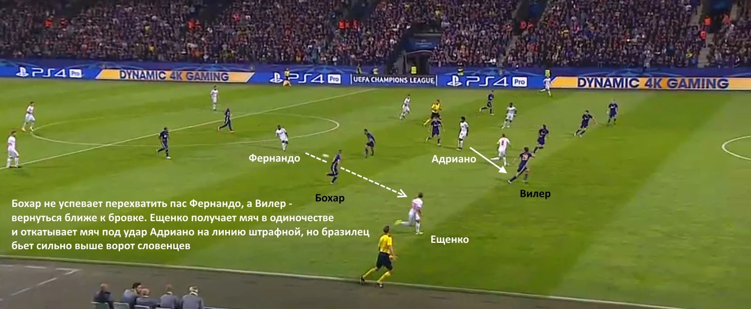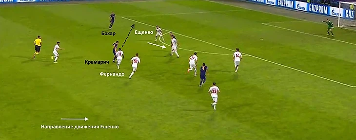 То, как Фернандо бежал за Крамаричем – преступление на уровне Лиги чемпионов (да и РФПЛ тоже), но зачем Ещенко сделал два шага в центр, непонятно совсем.