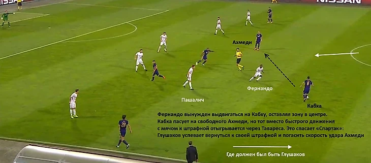 Это не был единичный случай: точно такая же комбинация у «Спартака» прошла на 37-й минуте, но из схожей позиции удар Промеса был заблокирован Кабхой.