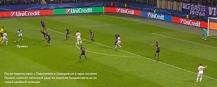 Во втором тайме почти ничего не поменялось. Мяч до лидера москвичей доходил не часто (27 касаний до перерыва, 26 – после), а когда Промесу все же удавалось дождаться передачи на фланге, то против него сразу возникали два-три игрока «Марибора».