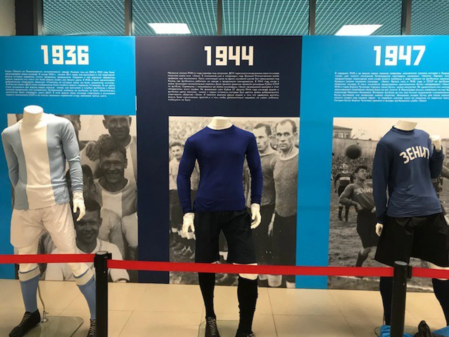 В фойе трибуны «B» открылась выставка пяти комплектов зенитовской формы – с 1936-го по 1974-й. Все желающие могли сфотографироваться в реплике футболки 1950-х годов — в такой зенитовцы выходили на матч открытия стадиона имени Кирова против ленинградского «Динамо».