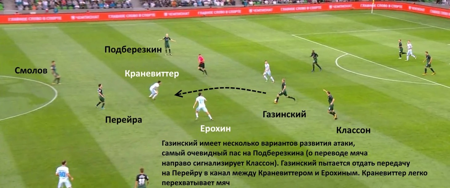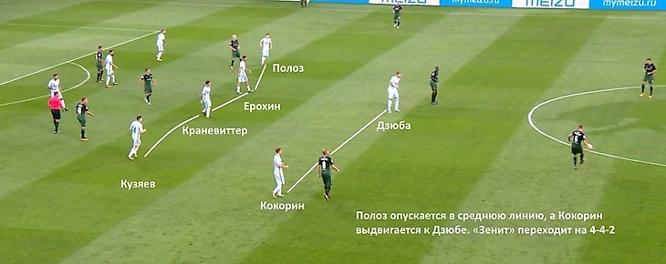Ближе к середине второго тайма питерцы снова изменили схему – теперь Кокорин и Полоз опускались на одну линию с защитниками. О прессинге и отборе мяча на чужой половине поля уже никто не думал.