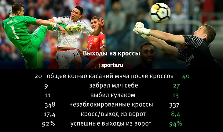 Стиль игры у Акинфеева и Лунева при подачах соперника очень разный.