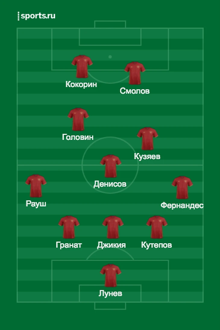 итого: Акинфеев - Васин - Джикия - Гранат - Фернандес - Рауш - Головин - Зобнин - Дзагоев - Полоз - Кокорин