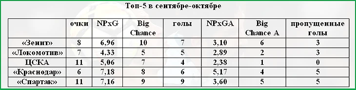 Более того, согласно общей продвинутой статистике за сентябрь-октябрь, атака «Краснодара» хороша даже на фоне «Зенита» и «Спартака».