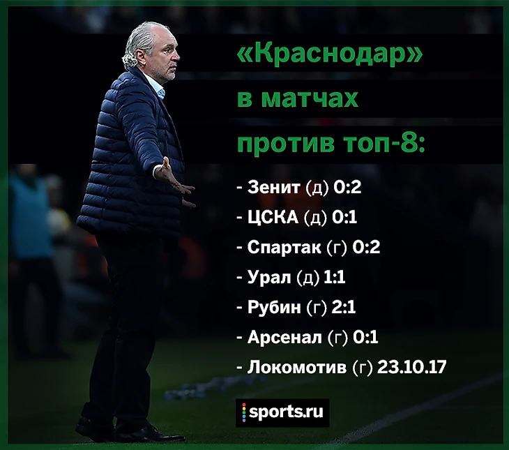 За последний месяц «Краснодар» дома проиграл «Зениту» и ЦСКА. Само по себе это не трагедия, но команда теряет очки в матчах практически со всеми клубами из первой восьмерки – и вот это уже большая проблема.