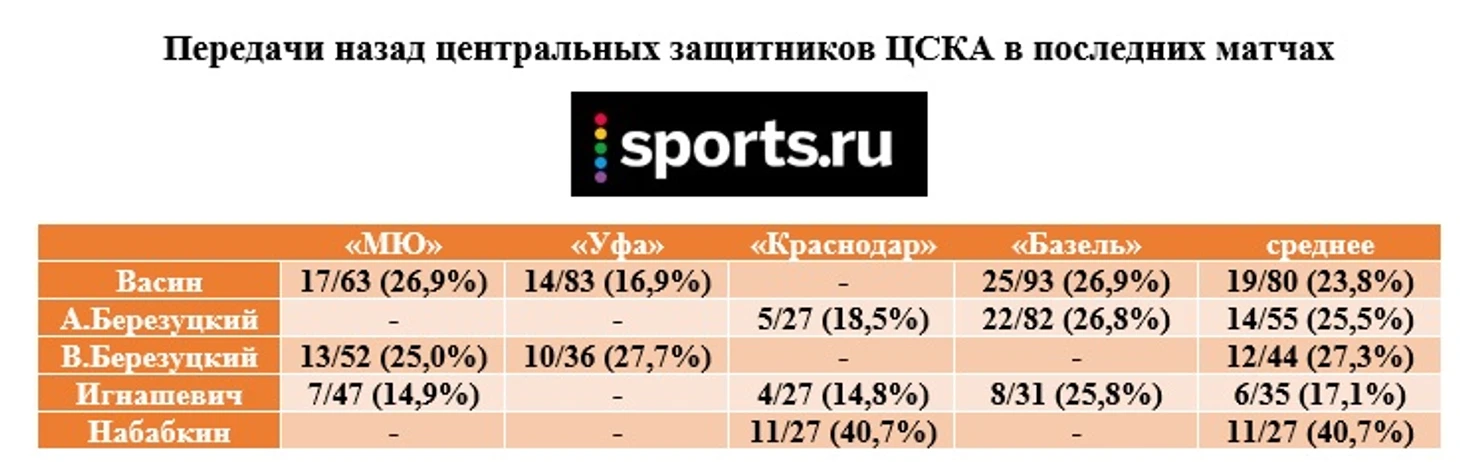 О беспомощности армейцев при билд-апе хорошо говорит количество передач назад от центральных защитников – в сумме рекордное для последних матчей.