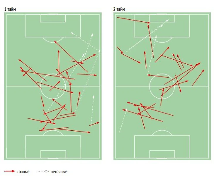 После перерыва изменилась роль Паредеса – во втором тайме Леандро уже почти не опускался к центральным защитникам для розыгрыша мяча. Из-за того, что и в первом тайме длительных позиционных атак у «Зенита» практически не было, аргентинец провел один из худших матчей в России по степени влияния на игру команды. За 90 минут Паредес сделал всего 58 передач – антирекорд для хавбека в РФПЛ. Реально обостряющей из них получилась одна – на Ригони в начале второго тайма.