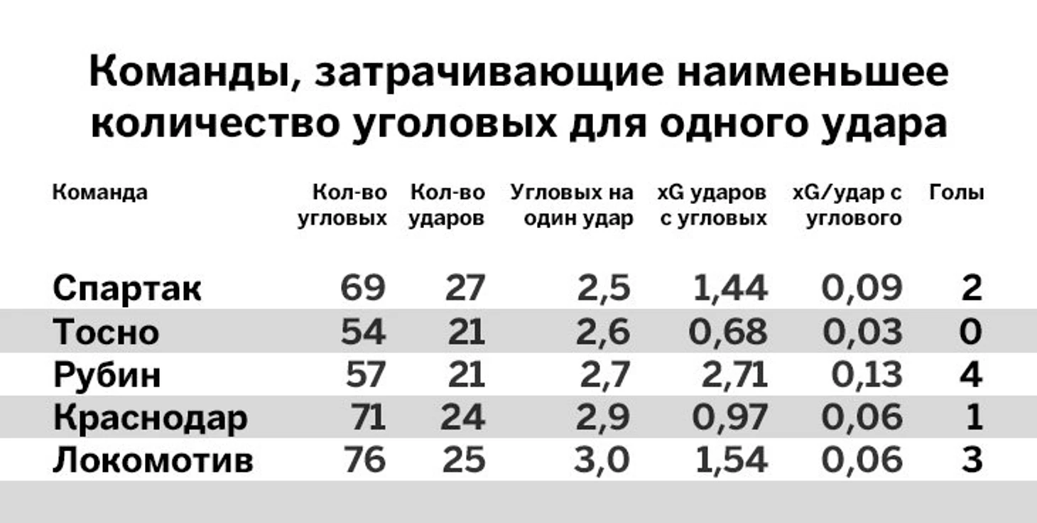 В результате «Локомотив» – одна из лучших команд лиги по соотношению количества угловых на один удар.
